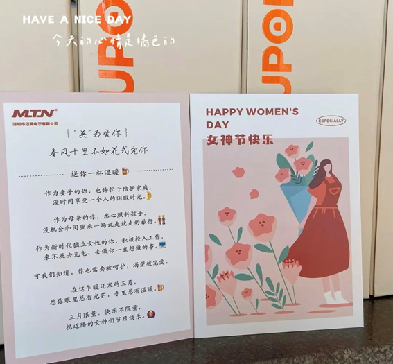 為體現(xiàn)公司的企業(yè)文化之一“關愛”,公司為各地區(qū)子公司及分公司的女同胞精心準備了溫馨的節(jié)日祝福及福利品,讓女性員工充分感受到邁騰大家庭的關愛,度過一個充滿愛心與溫情的美好節(jié)日。