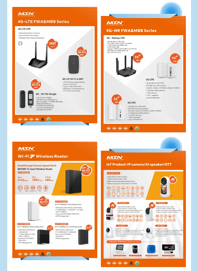 本次展會,邁騰電子攜5G CPE、交換機、AI-IPC、Wifi7、云網(wǎng)絡(luò)產(chǎn)品等最新網(wǎng)通科技成果及應(yīng)用登場。每一款產(chǎn)品都凝聚著邁騰電子研發(fā)團隊的智慧與心血,代表著行業(yè)的領(lǐng)先產(chǎn)品及應(yīng)用。