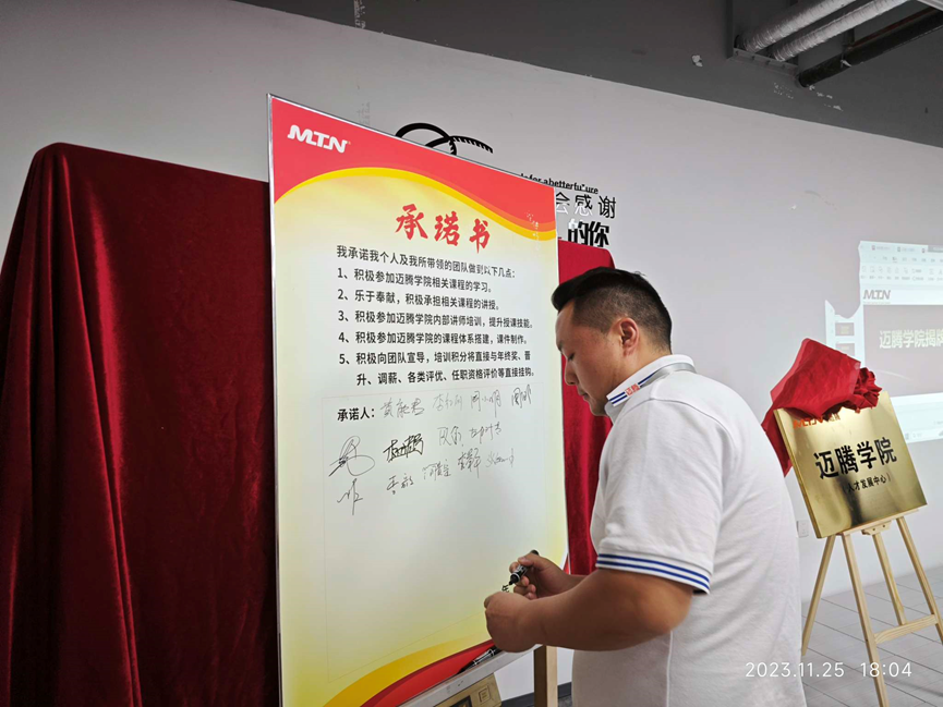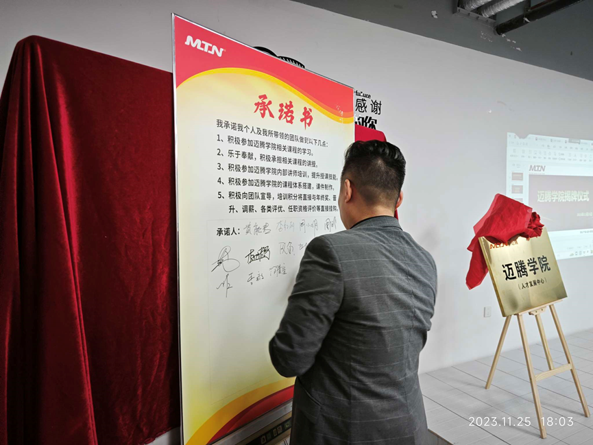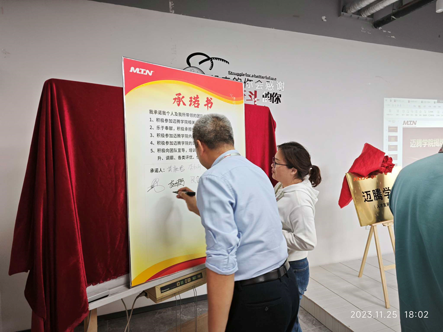 與會(huì)人員一起宣誓和簽字承諾,倡導(dǎo)公司上下所有同事,積極參與邁騰的授課、學(xué)習(xí)、互動(dòng)等,為邁騰電子的發(fā)展全力以赴、用邁騰學(xué)院的平臺(tái)為自身職業(yè)發(fā)展賦能。