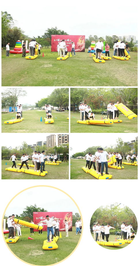 緊接著的“同舟共濟”項目,團隊成員站在有限面積的“船只”上,模擬海上航行,需共同應對“風浪”。成員們相互扶持,憑借彼此間的信任,保持“船只”穩(wěn)定前行。游戲后,大家深刻體會到在公司發(fā)展的“航行”中,相互信任是抵御風險、破浪前行的基石,唯有攜手共進,才能駛向成功彼岸。